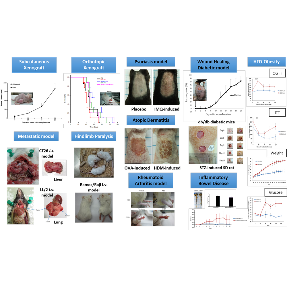 | 皮膚癌 | 皮下移植: A431, B16-F10(m) 腫瘤轉移: B16-F10(m) |