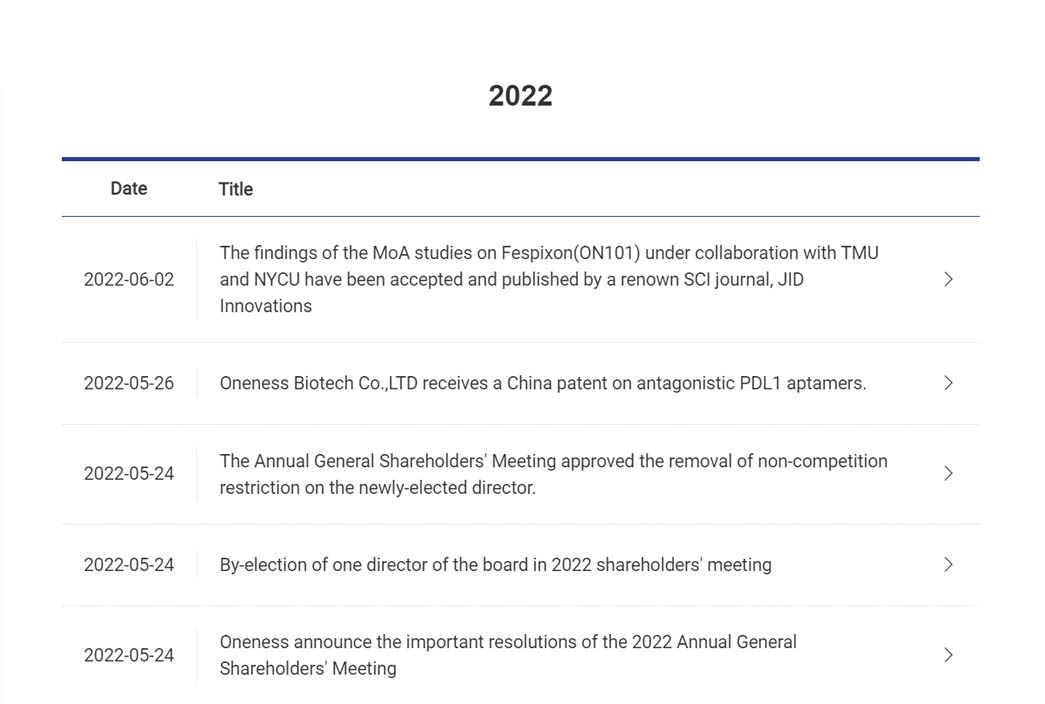 The results for the 11th Corporate Governance Evaluation has been announced on April 30, 2025. Oneness ranks among Top 5% in the TPEx-listed category and Top 10% of listed companies with a market capital of 10 billion TWD or more in the non-finance and non-electronics industry for four consecutive years, recognizing Oneness’s excellent performance and efforts in corporate governance and sustainability.
