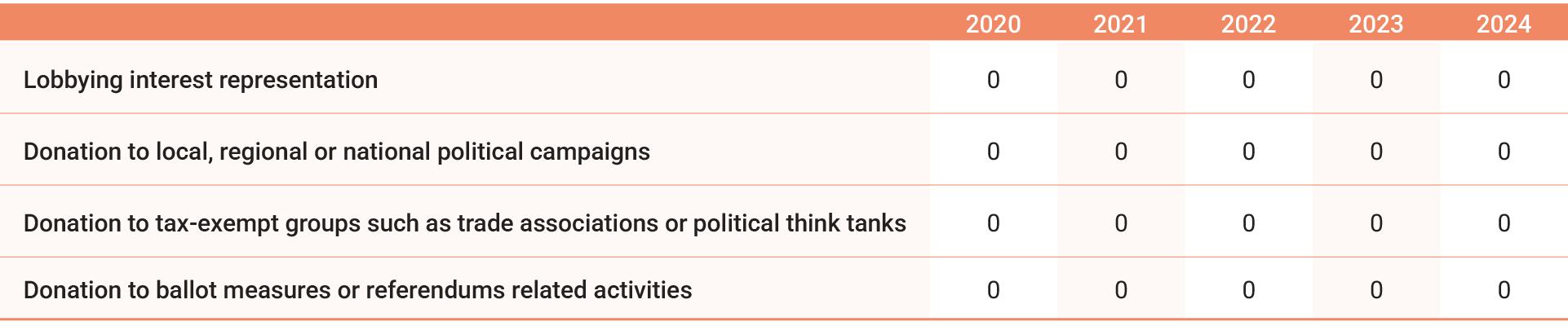 • Any illegal political donation or contribution is prohibited (Article 7 of “Ethical Corporate Management Best Practice Principles”).