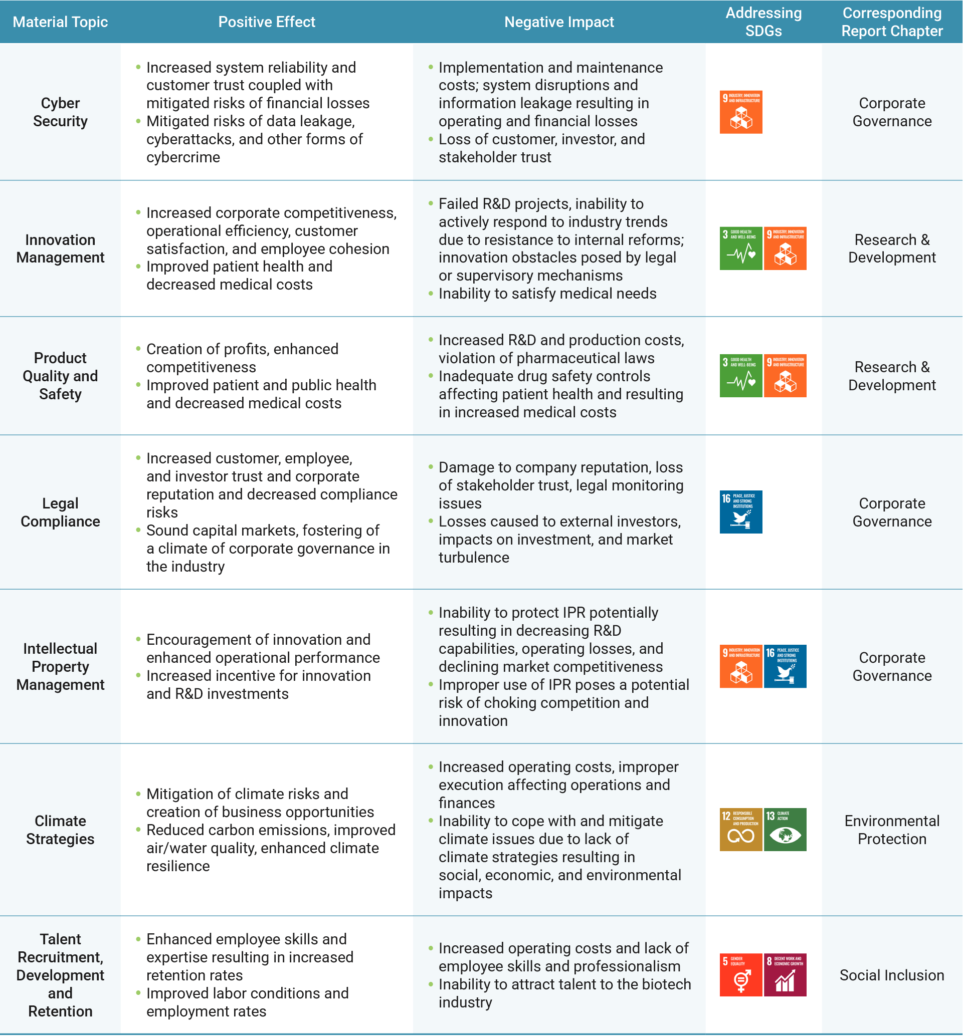 1. Material Topics: Topics with significant impact on internal operations and the external environment and society, for which the Company shall establish a management approach