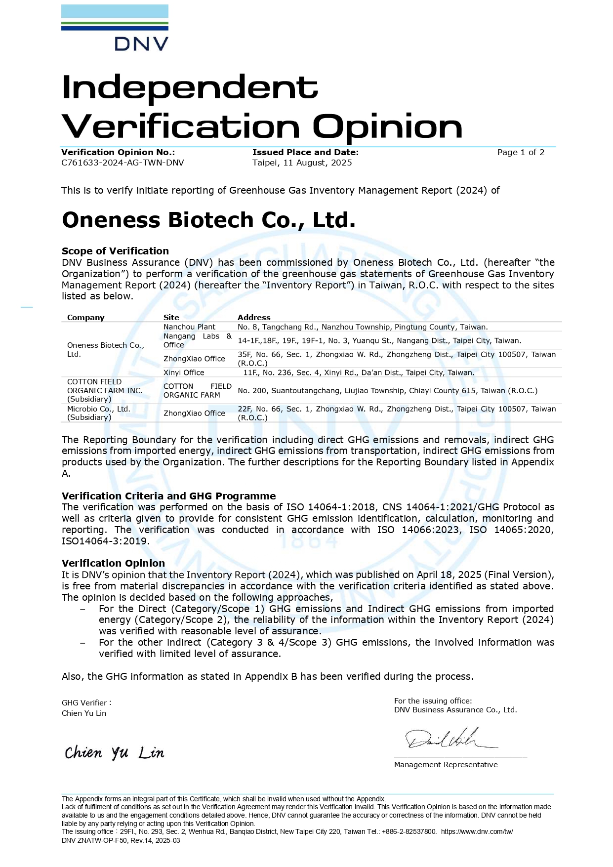 依據《2019 Refinement to the 2006 IPCC Guidelines for National Greenhouse Gas Inventories》第4卷第5章Cropland Management所提供之Tier 1方法,估算承租前採傳統農法及承租後採有機農法之20年內,平均每年增加/移除的排放量。棉花田有機農場自2017年03月承租以來,一直採用有機耕種,有機認證面積為32.4679公頃,並換算每年碳匯量,每年可吸收約86.953(tCO2e)。