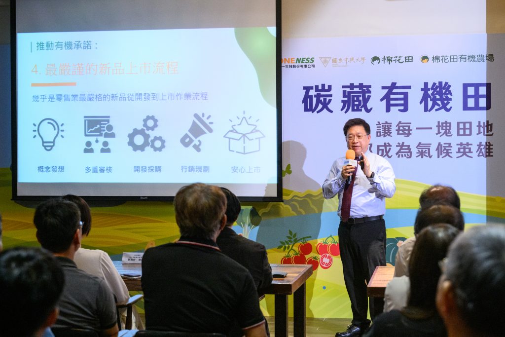 本次研究由中兴大学森林学系 柳婉郁教授团队主导,透过专业的科学设计与严谨的采样分析,让我们得以看见有机农业在碳中和路上的潜力与价值。国立中兴大学 宋振铭研发长指出:”净零排放不仅是世界趋势,更是国家政策。政府、企业、大学及农民都扮演着关键的角色。中兴大学积极发展净零科技,尤其是自然碳汇。我们期望透过农业黄碳实现减排与增汇,让土壤与作物维持健康,达成永续生产模式。”