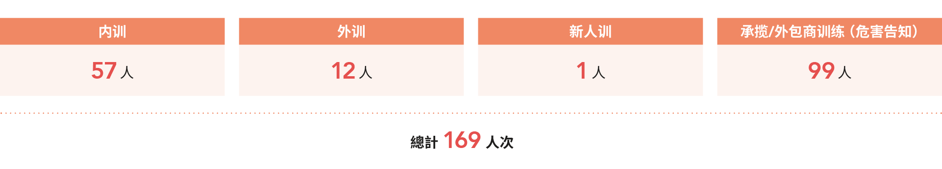 推行职业安全健康相关措施,包括:工作环境危害鉴别与风险评估、建立”职灾预防数据库”、推行”合一生技新生活运动”等,期能强化员工职业安全之管理机制。为提倡健康生活,各区域同仁亦自组运动性社团,本公司则依各社团需求提供相关经费补助。