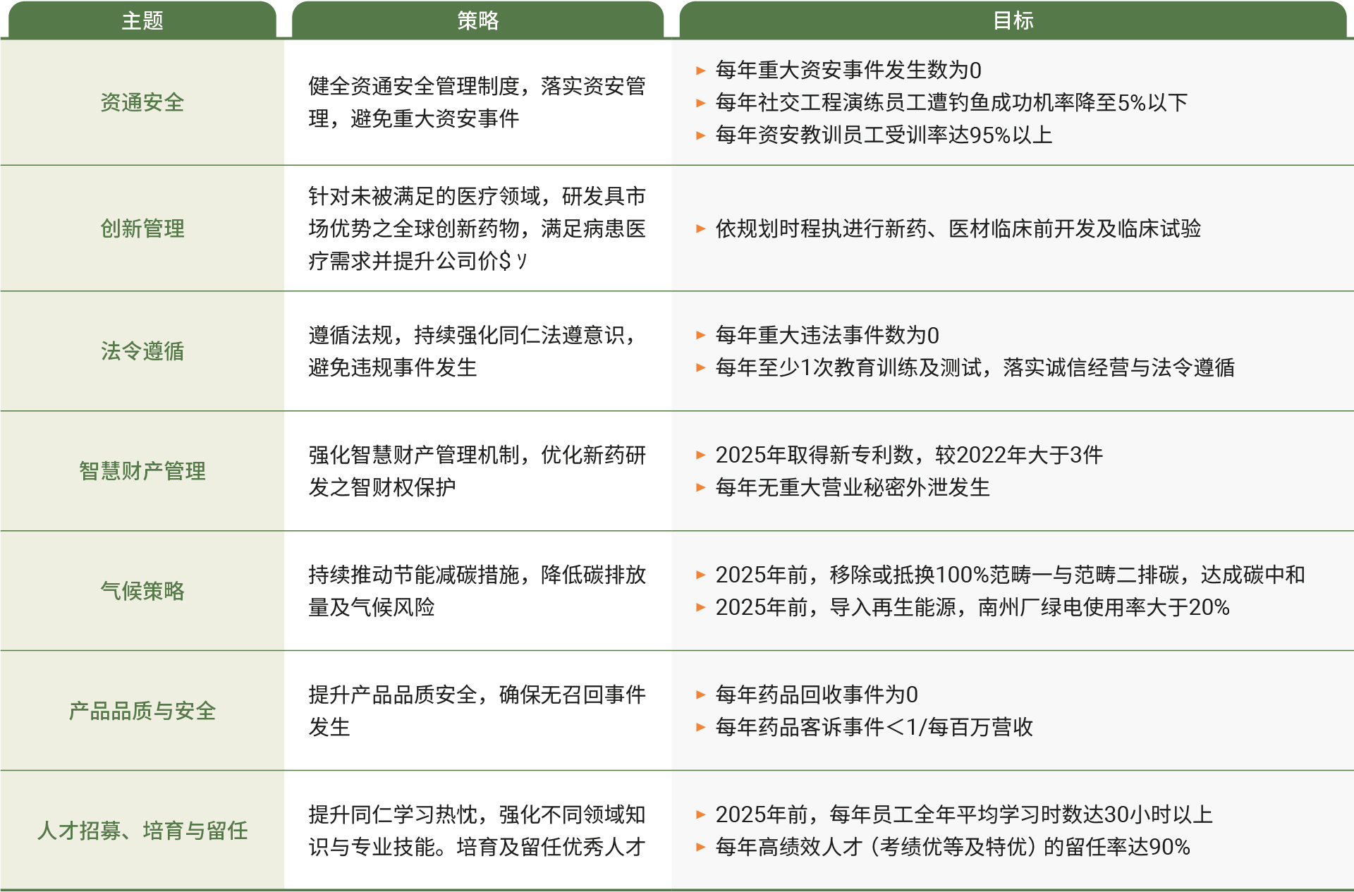 注:有关各目标执行情形,请参考永续报告书各章节说明。